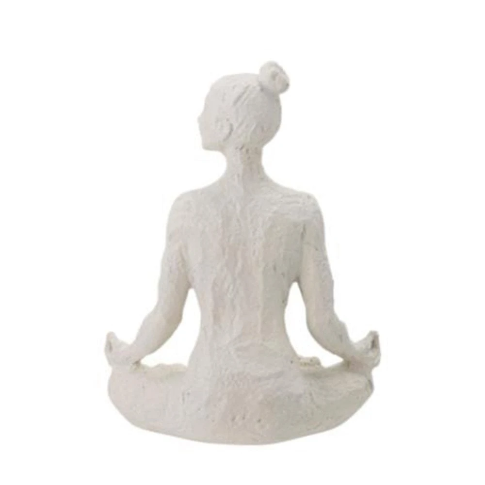 This statue depicts a crosslegged female doing yoga. This quirky ornament with its rustic finish will look fabulous in your home.