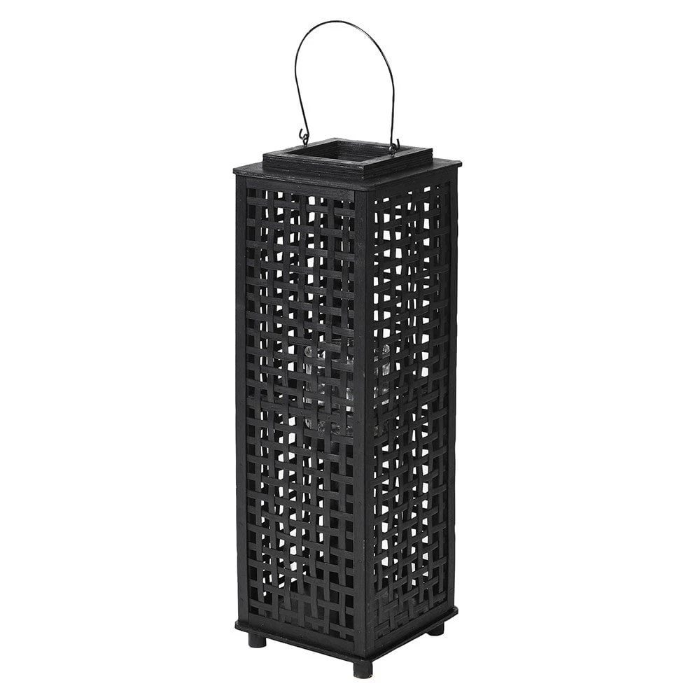 Try a modern twist on oriental style with this striking, black bamboo lantern. It showcases crisscrossed slats on all sides, which allow candlelight to glow softly into your room. The lantern’s boxy proportions and dramatic colour give a contemporary feel, while the feet and weave design are purely Eastern-inspired.