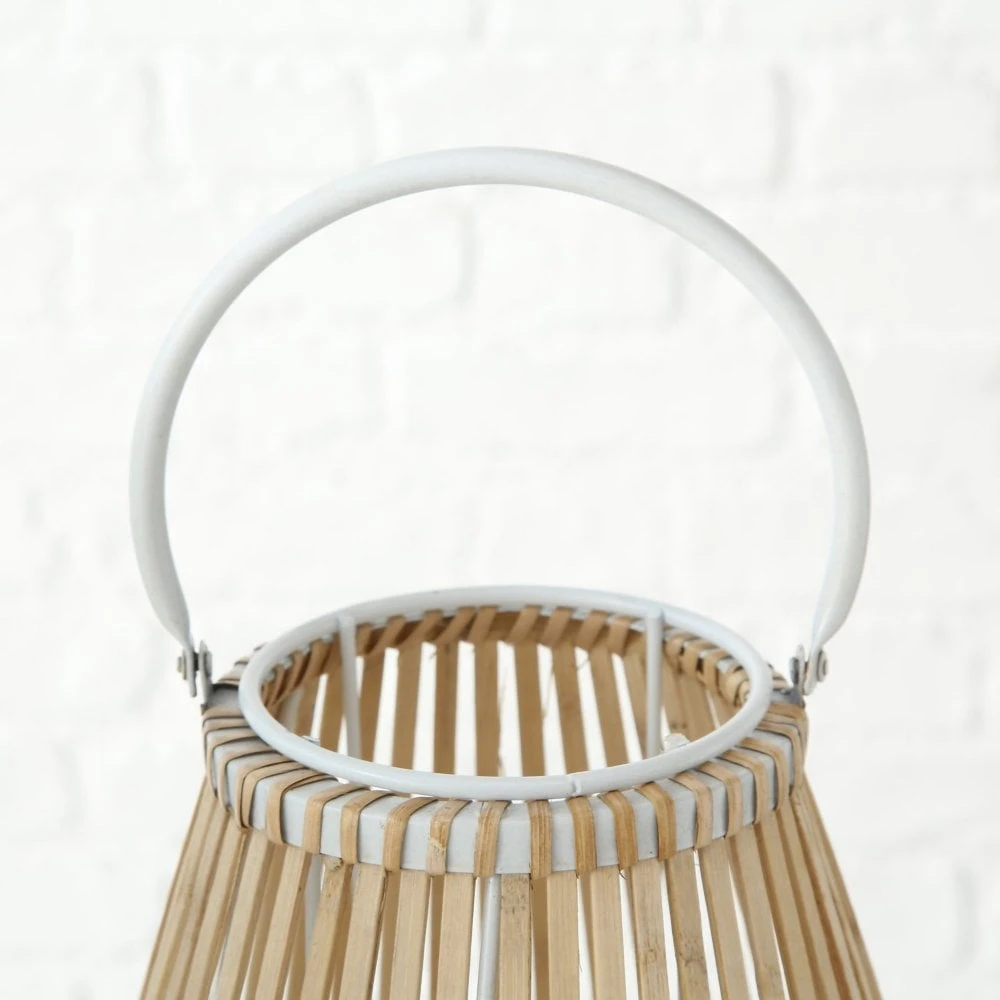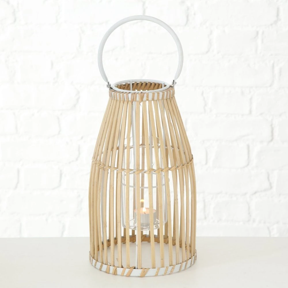 These bamboo lanterns combine rustic materials with modern looks. The set includes two different sizes to allow for creative displays in your coastal or boho space. Each lantern features a slatted, bamboo wood frame with a glass candle holder inside. Circular top handles accentuate the lanterns’ curves and make for a practical touch.