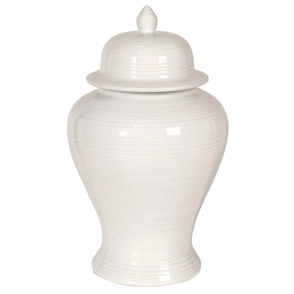 Discover the sophisticated way to achieve oriental style with this white temple jar. Showcasing a traditionally curvy shape with a finial on the lid, the jar has a glossy, subtly-textured finish. Pair it with other neutrals or with bright colours for contrast. Use it for storage or simply display it for its beauty.