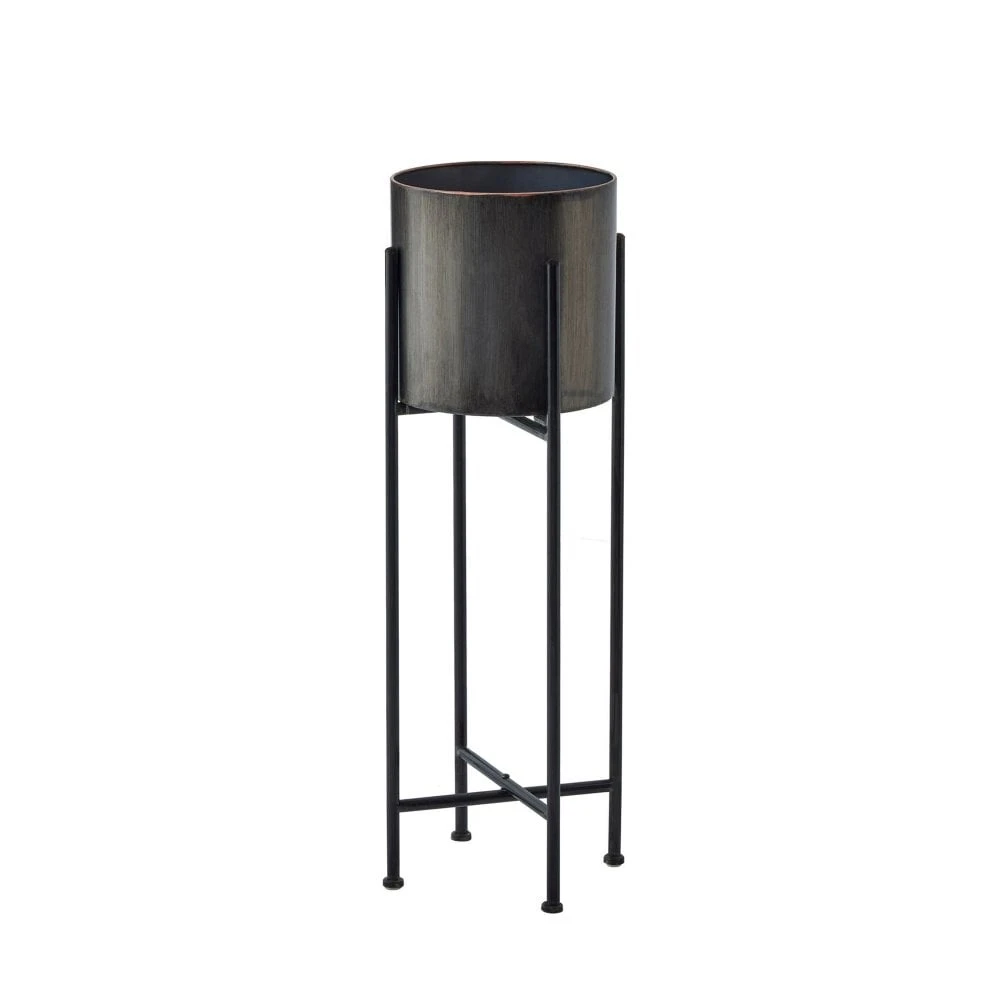 HI Gun Metal Grey Cylindrical Planter On Black Frame