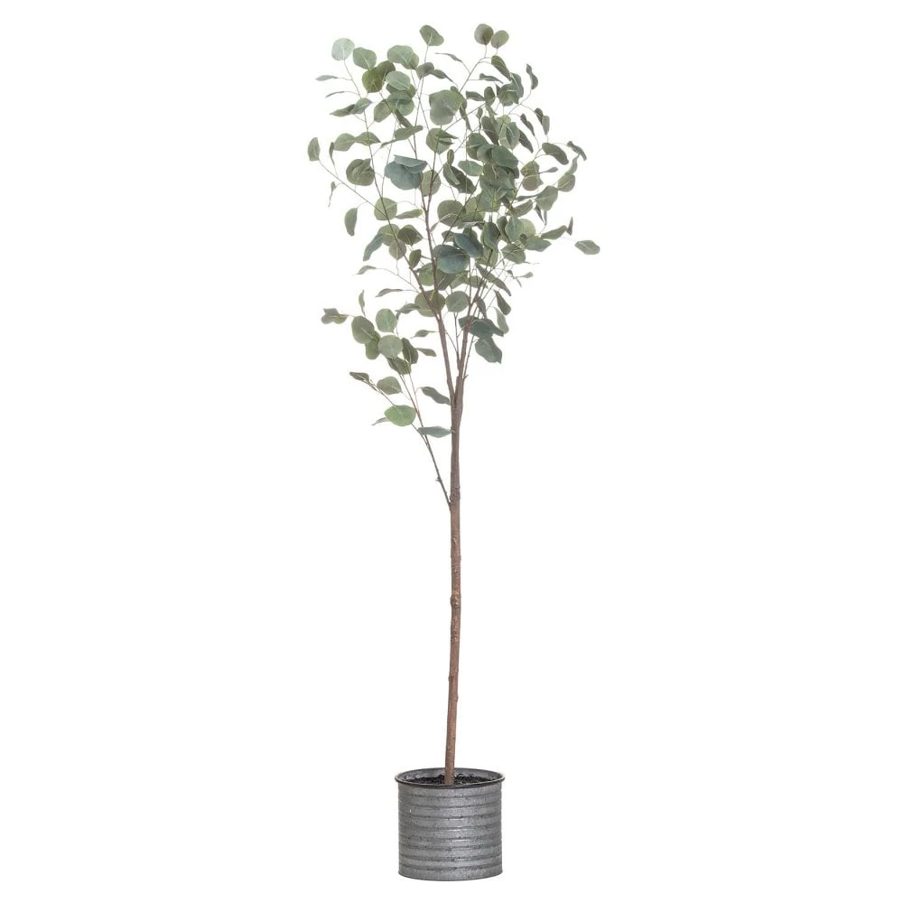 Add a pop of greenery to your space with this faux eucalyptus tree. Standing tall in a silver metal pot, it’s the perfect way to dress up a bland corner of your room. The leaves and slender trunk look incredibly realistic. This artificial eucalyptus is perfect for your living room, hallway or bedroom.