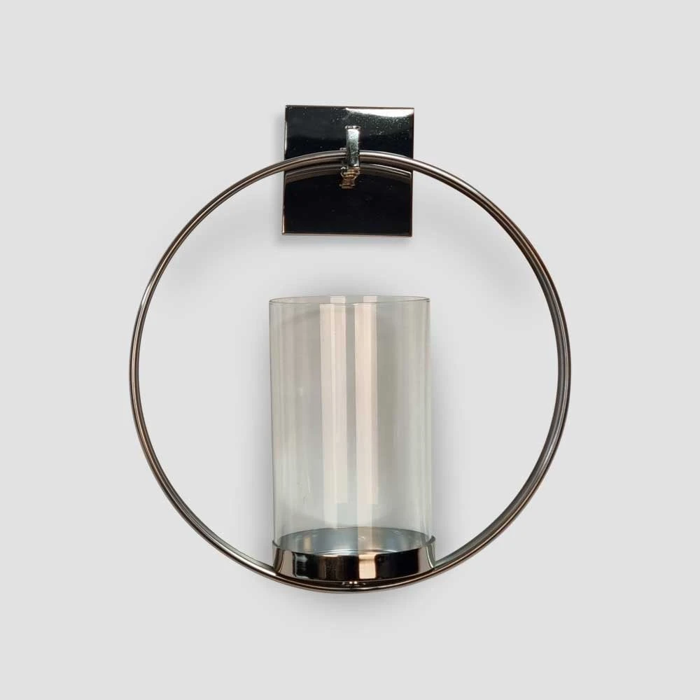 This elegant wall sconce will suit any contemporary space. It features a lustrous glass candle holder supported by a shining metal hoop. The simplicity of the design lends itself to a range of current schemes, from minimalism to modern glamour. It’s a stylish way to light up a gloomy corner.