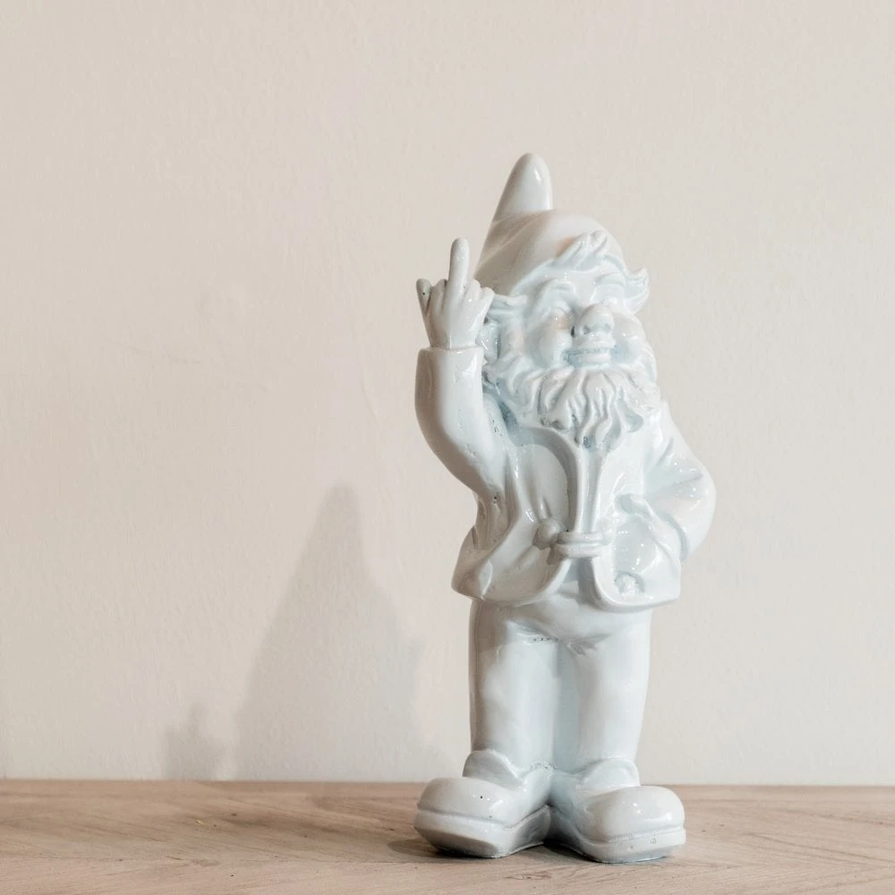 Add a dash of humour to your eclectic home with this naughty gnome ornament. His cheeky pose is sure to raise a smile! The white finish will match your décor, while the handcraftsmanship gives you artisanal quality. Display this gnome figure with the black version and a few potted plants.