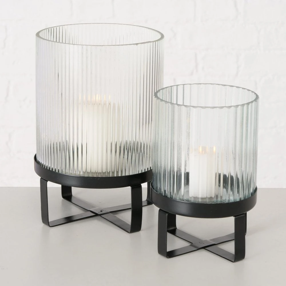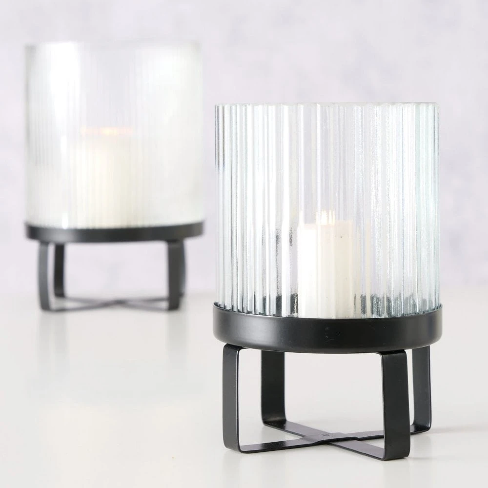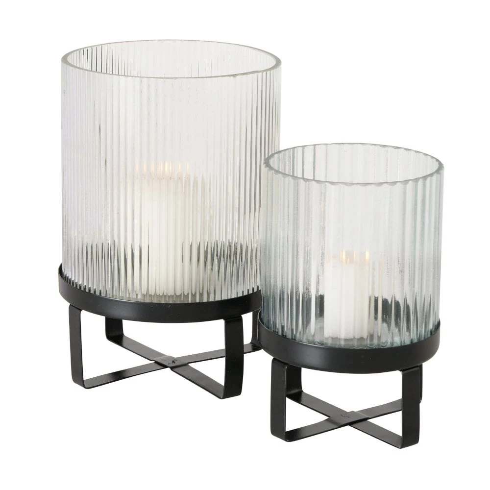 Ribbed Glass Candle Holders – Set Of 2