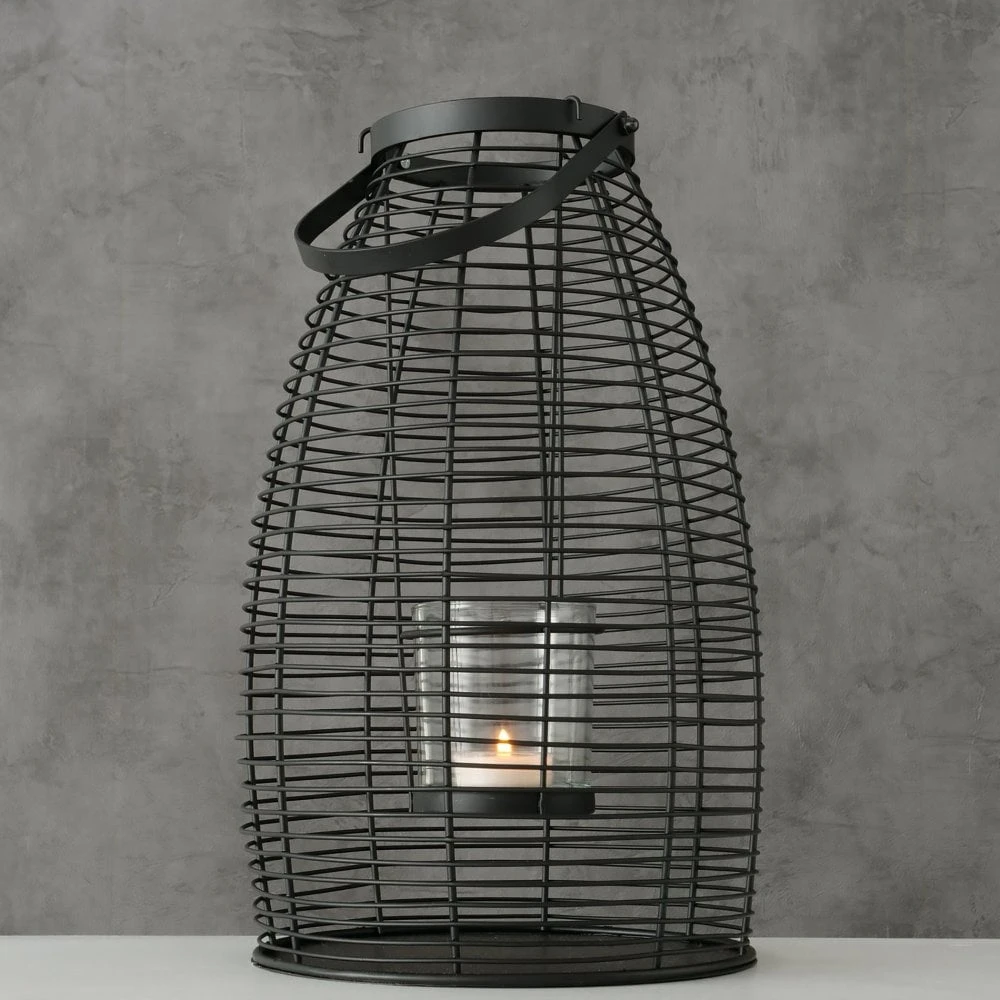 Keep your Scandi décor looking modern with this black metal lantern. It has a curvy shape that’s emphasised by the slatted design. Easy to style in a neutral colour scheme, this lantern makes a striking statement – either alone or paired with the medium version. Changing your candle is easy thanks to the removable glass holder.