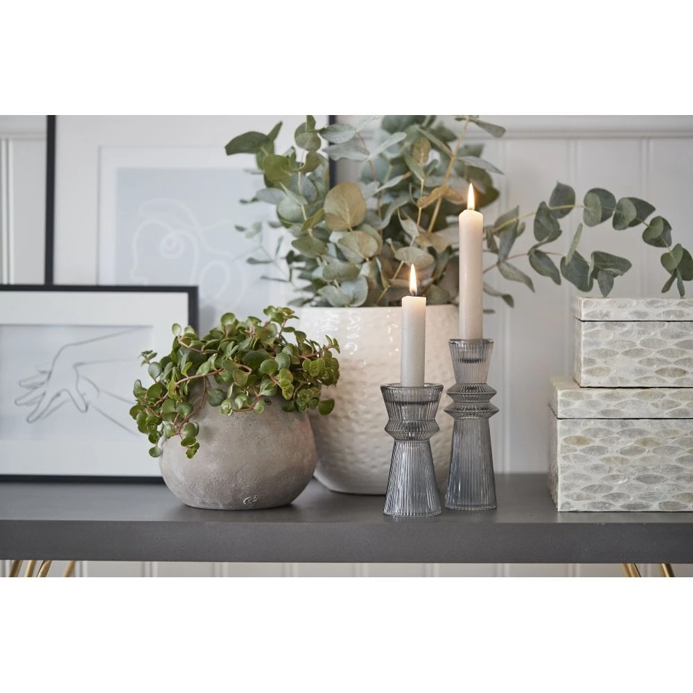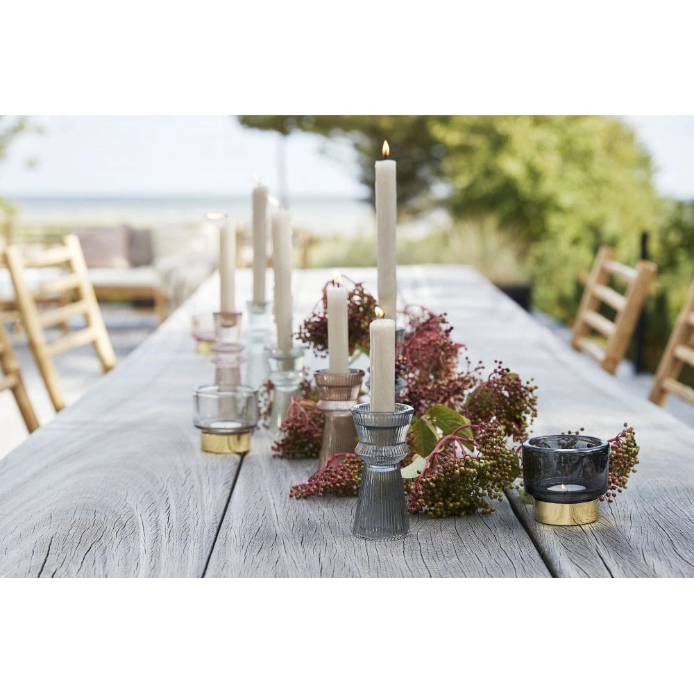 The glass is made of several layers. In the middle layer, the color is painted on, so that the beautiful color is visible all around the candlestick. The design with the small “grooves” in the glass gives the candlestick an elegant and timeless look – and the glass looks so gorgeously that you cannot resist touching it!