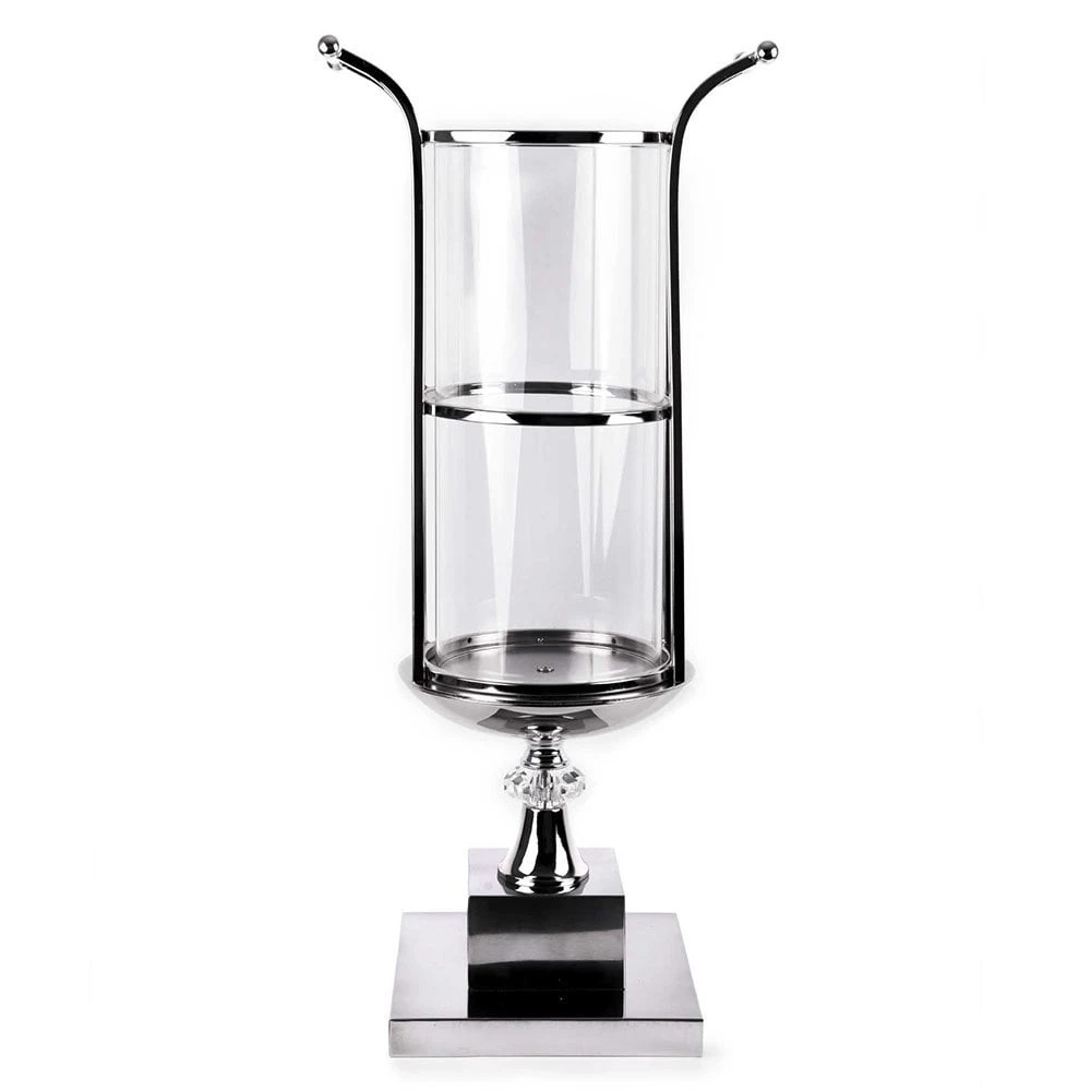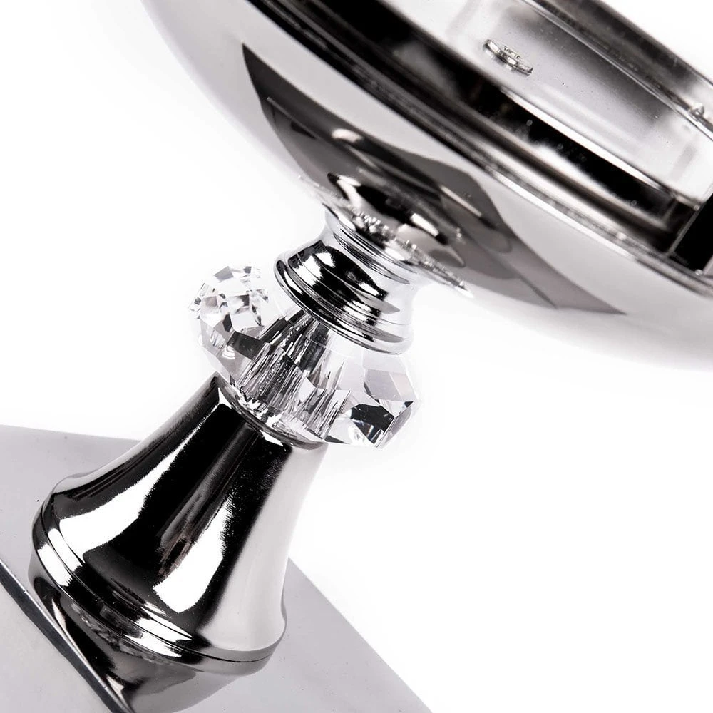 An impressive table centrepiece, with sleek metal curves surrounding a glass focal point. Set upon a bold, chunky base that’s accented with crystal, this is a strikingly modern piece. With your choice of candle inside, light will flood your room, creating a wonderfully warm atmosphere and a luxurious look.
