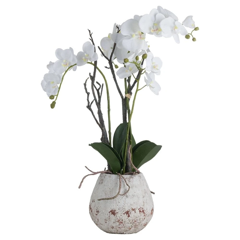 This beautiful faux plant offers all the elegance of a real orchid without the upkeep. The petals and leaves feel authentic while the white colour looks luxurious. The stone pot is attractive and will complement a range of interiors. Position this piece on your mantel, bookshelf or dining table for instant style.